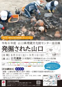 大すき ふるさと下関 歴史マップ 作品展2025年10月25日詳しく見る開館30周年記念特別展「上の山古墳と穴門の趨勢-本州最西端の後期古墳と集落-」2025年9月4日詳しく見る山口県埋蔵文化財センター巡回展「発掘された山口」2025年6月26日詳しく見る平常展示「綾羅木式土器の世界」2025年4月17日詳しく見る平常展示「郷台地の弥生石器」2025年3月20日詳しく見る「大すき ふるさと下関 歴史マップ」巡回展2024年11月30日詳しく見る第22回 発掘速報展「掘ったほ!下関 2024」2024年8月21日詳しく見る山口県埋蔵文化財センター巡回展「発掘された山口」2024年6月20日詳しく見る平常展示「綾羅木式土器の世界」2024年4月6日詳しく見る第3回「遺跡deあーと」受賞作品展 開催2024年3月8日詳しく見るスポット展示2023年12月11日詳しく見る第3回 遺跡deあーと-表現しよう!古代のしものせき-2023年12月1日詳しく見る令和5年度 企画展2023年9月2日詳しく見る第21回 発掘速報展2023年5月7日詳しく見る第2回「遺跡deあーと」受賞作品展2023年2月25日詳しく見る平常展示「綾羅木式土器の世界」2023年2月13日詳しく見るアート作品展2022年10月28日詳しく見るアート作品展 作品の募集は終了しました。たくさんのご応募ありがとうございました。2022年10月16日詳しく見る第20回 発掘速報展2022年9月10日詳しく見る令和4年度 企画展示①2022年5月17日詳しく見る ※平成30年度以前の企画展については、年報をご覧ください。